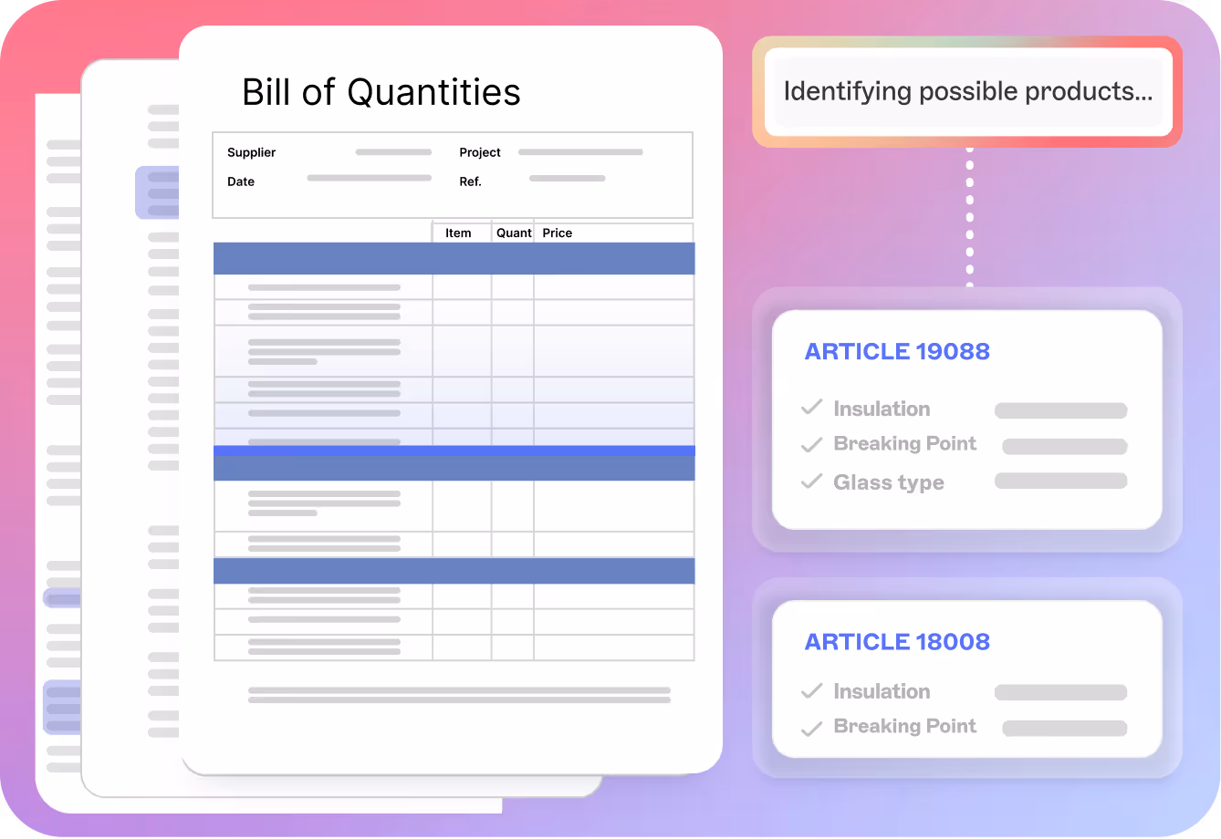 Handling Bills of Quantities (BoQs) is a pain: Your team wastes hours every day by manually interpreting line items and specifications, mapping them to your catalogue, and preparing quotes.