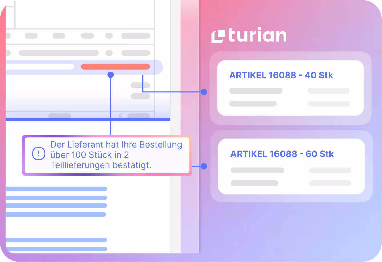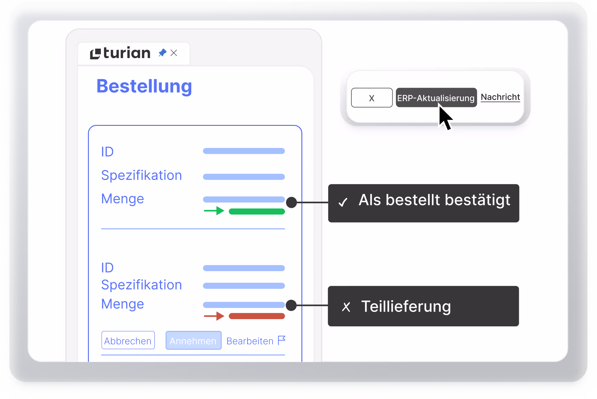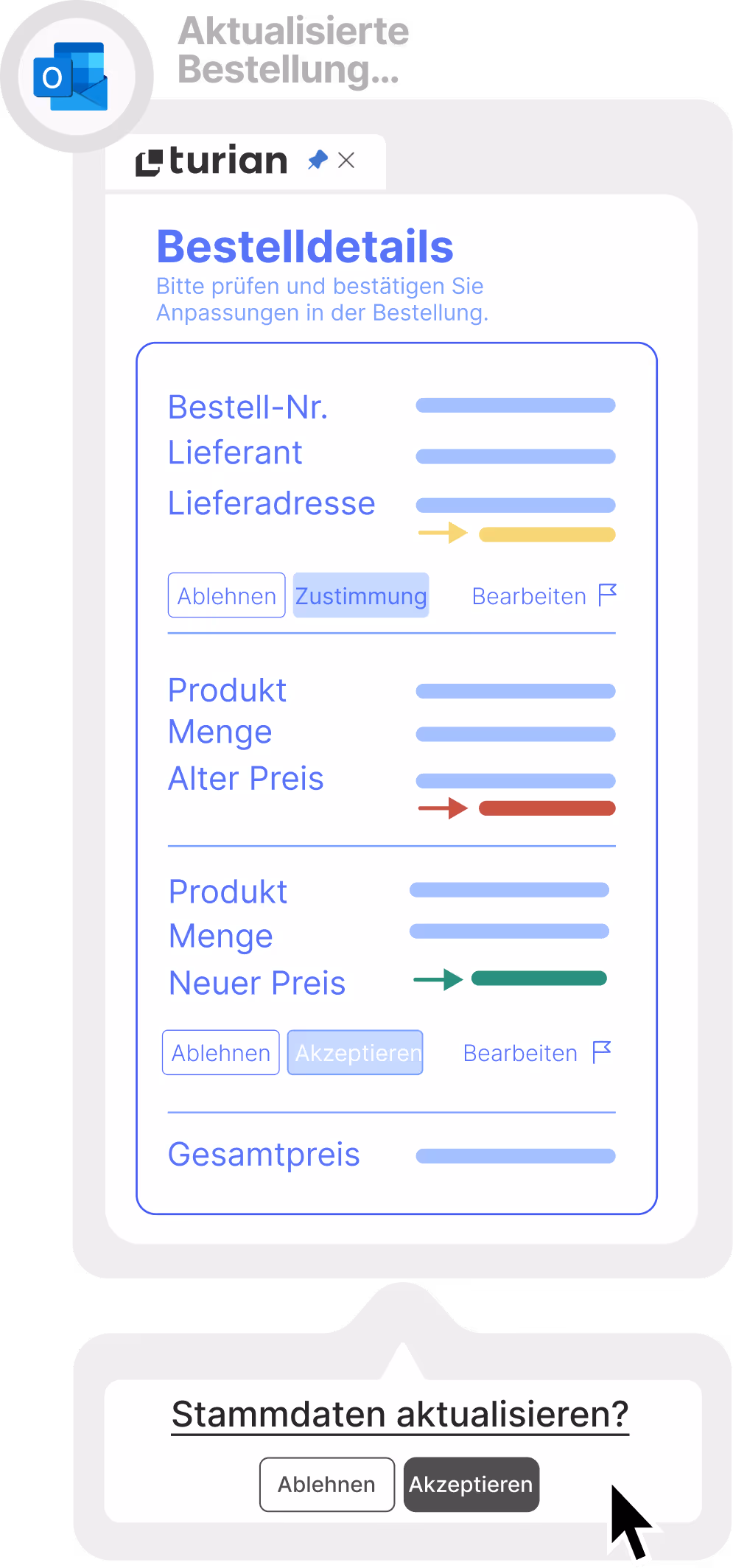 Geben Lieferanten Änderungen auf ABs durch, erfodert dies häufig nicht nur eine Anpassung der Bestellung, sondern auch der Material- oder Lieferantenstammdaten. Aus Zeitgründen fällt dies oft unter den Tisch - nicht mit turian.