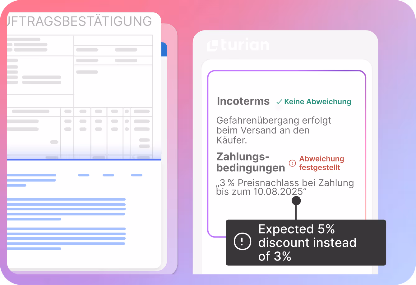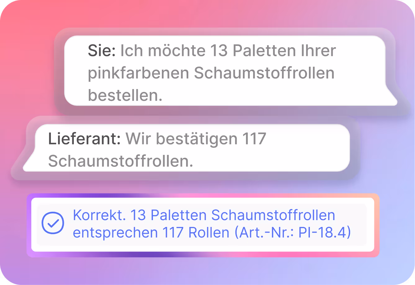 Selbst komplexe Sachverhalte werden vom KI-Agenten korrekt erkannt und interpretiert, z.B. Teillieferungen, Umrechnung von Preis-Mengen-Einheiten, Zuschläge und Rabatte, u. v. m.