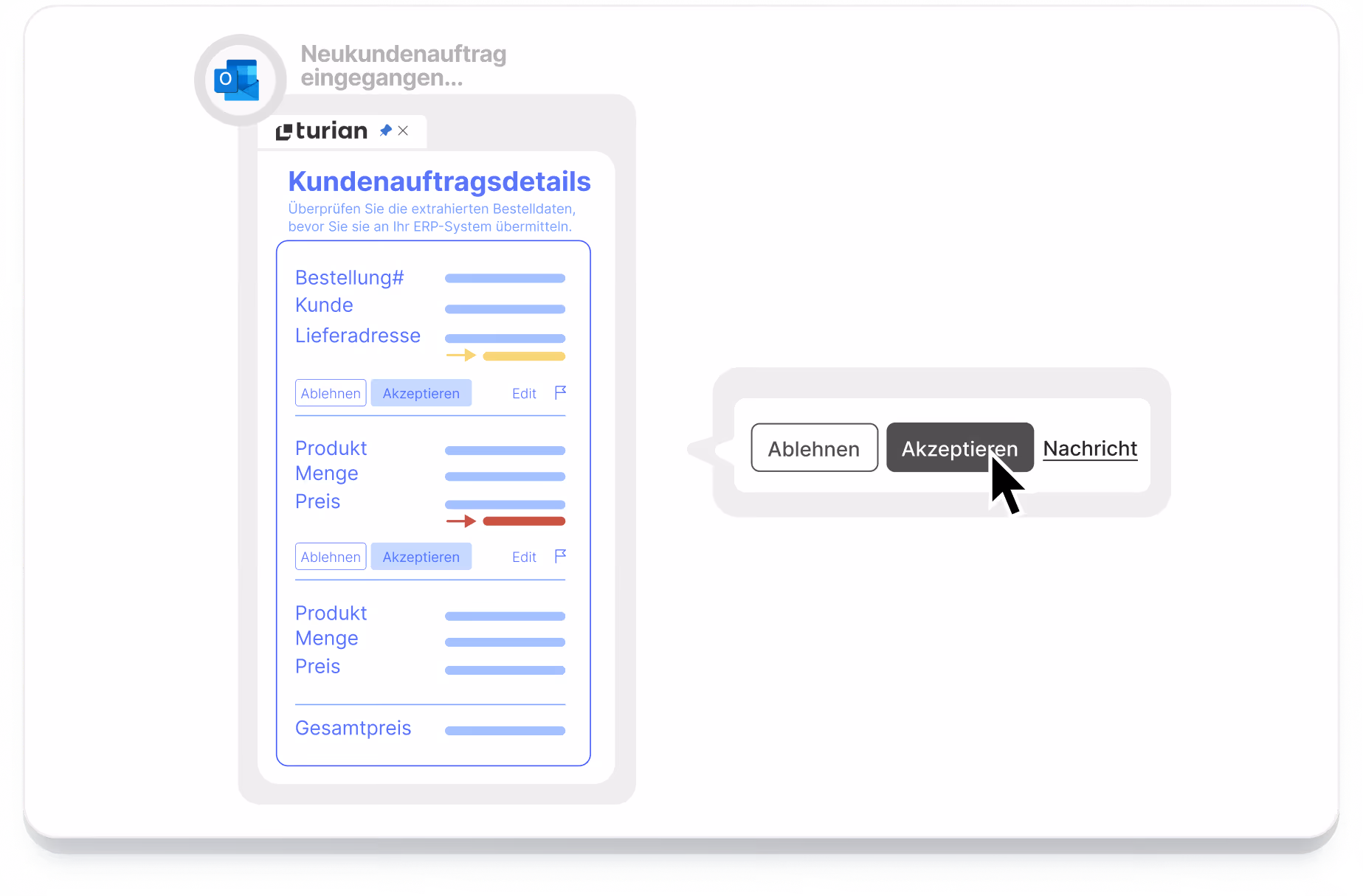 Die Software für Auftragsbearbeitung von turian integriert sich direkt in Ihr ERP, CRM und Ihre E-Mail-Postfächer.