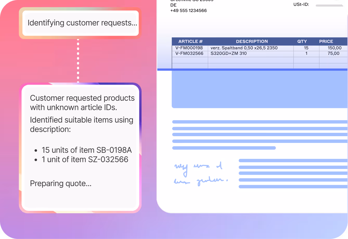 Create quotes automatically even from vague or free-text customer requests