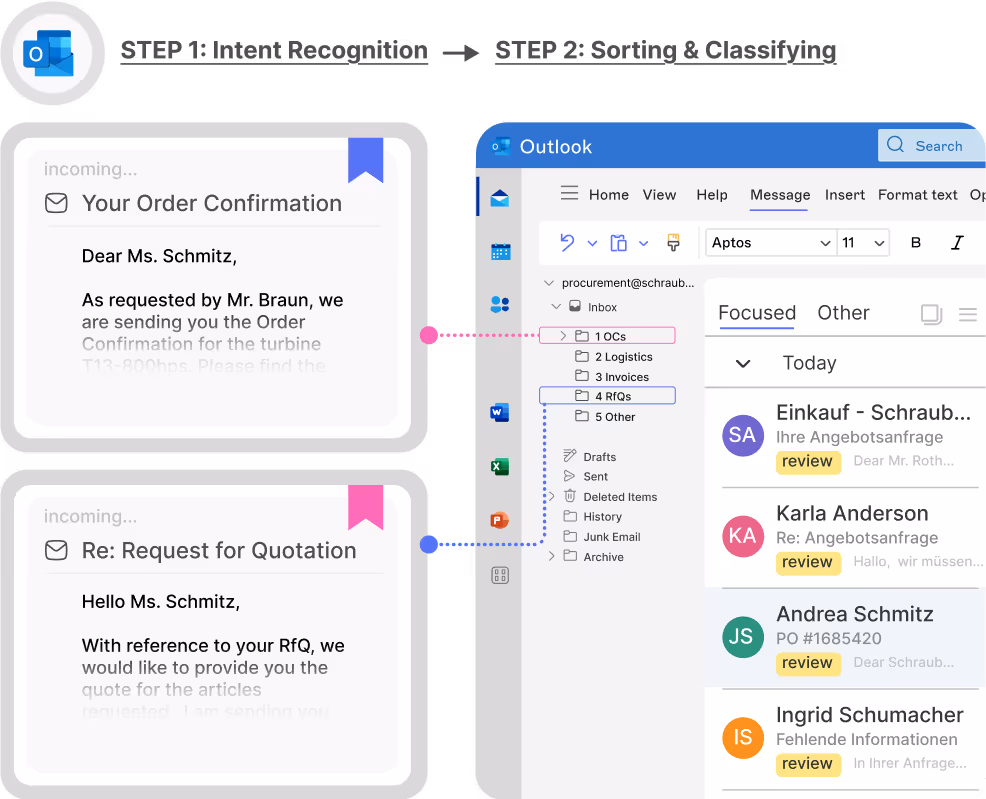 This allows, for example, order confirmations to be distinguished from delivery date changes or general inquiries.