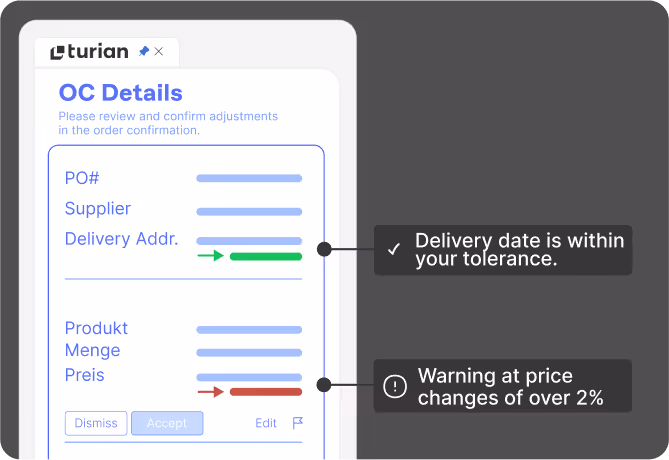 Our AI agents for operational procurement can proactively and autonomously send reminders for missing order confirmations or overdue delivery dates.