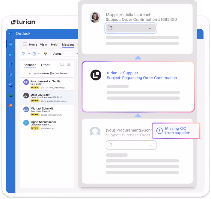 Check order confirmations and supplier communication in seconds. And save 80% time.